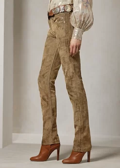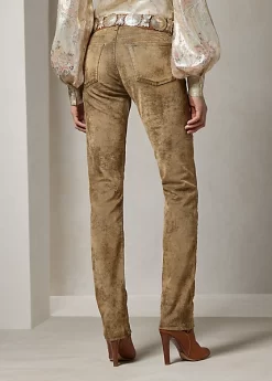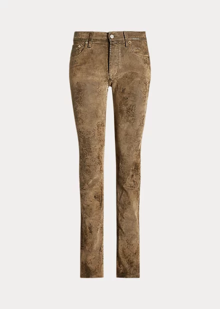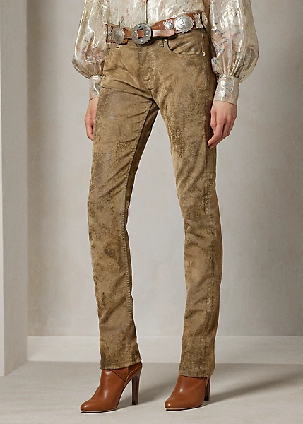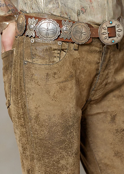 Made in Italy, the 750 straight ankle jean is designed with a mid-rise and a button fly. This rendition is crafted with stretch-infused flocked denim that’s meticulously detailed with an irregular print and a transparent foil for a vintage-inspired sueded appearance.