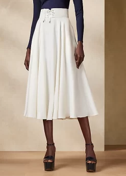 Cut for a calf-grazing length, the fluid fit-and-flare silhouette of the Abberton skirt is modernised with highly considered elements, including a corset-style waistband construction, lambskin cords with “RL”-engraved cord ends and lambskin-covered grommets. Carefully crafted in Italy and equipped with side on-seam pockets, this breezy skirt is made with mulberry silk shantung – a plain-weave silk woven with an ultra-fine slub yarn, affording a rustic look and a soft hand.