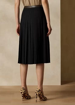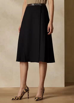 Cut for an A-line silhouette with a true wrap closure, the Alexandrine skirt features a supple lambskin waistband that secures with two snaps and a polished, stacked “RL” buckle. Elevated by highly considered elements, including a frayed edge and engineered pleats that are stitched down, then released beautifully below the hip, the Alexandrine is woven with a stretch-infused flannel fabrication, which is brushed to create a napped texture and considered for its cosy feel and remarkable drape.