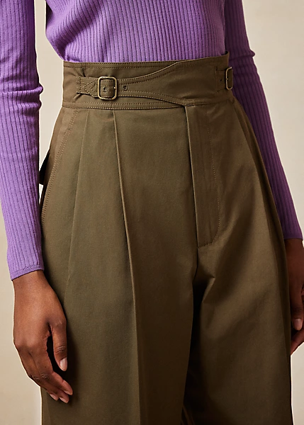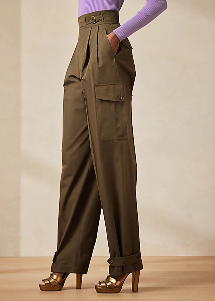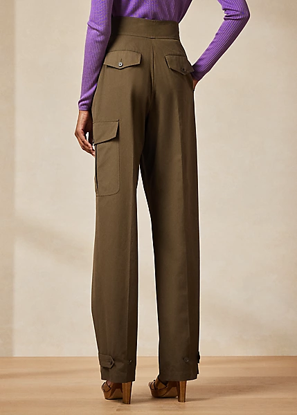 Rendered in washed cotton for a soft hand, the Anniston is Ralph Lauren’s newest interpretation of the cargo trouser, and features an array of pockets, including side on-seam pockets, a buttoned cargo pocket and two buttoned pockets on the back of the waist. Tailored with crisp pleats and creases for a leg-elongating effect, this trouser is designed with a Gurkha-inspired buckled waistband and buttoned tabs on each cuff, creating a fit that is completely customisable.
