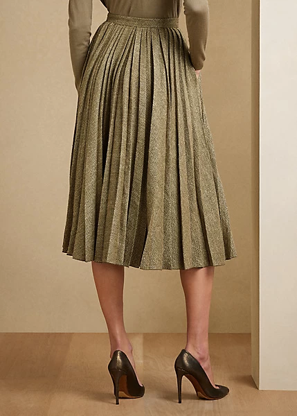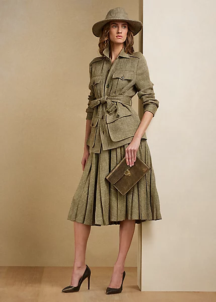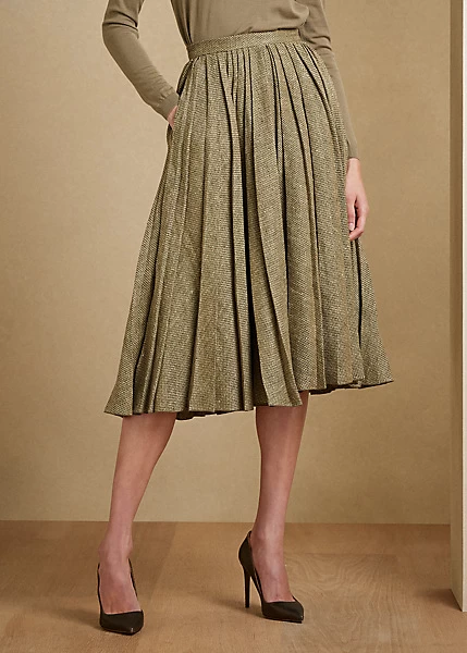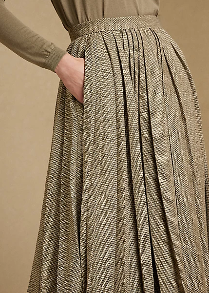 Irregular pleats lend a sense of elegant movement to the Arnav – an Italian-made skirt made with a linen-and-silk blend in a multi-broken twill weave, which balances the rustic allure of linen with the soft, luxurious hand of tussah silk.