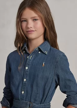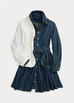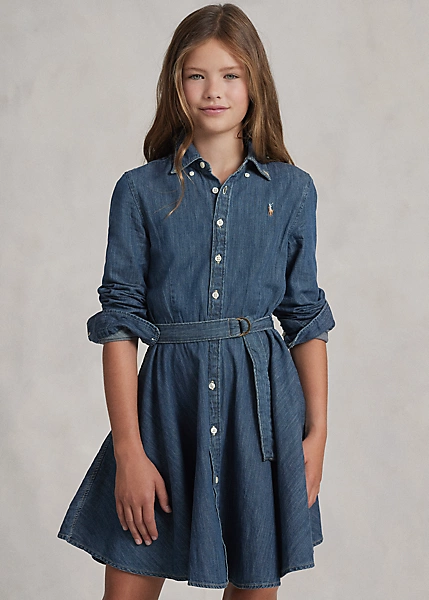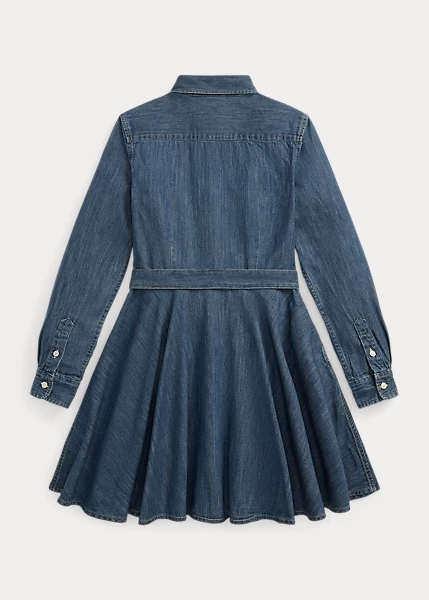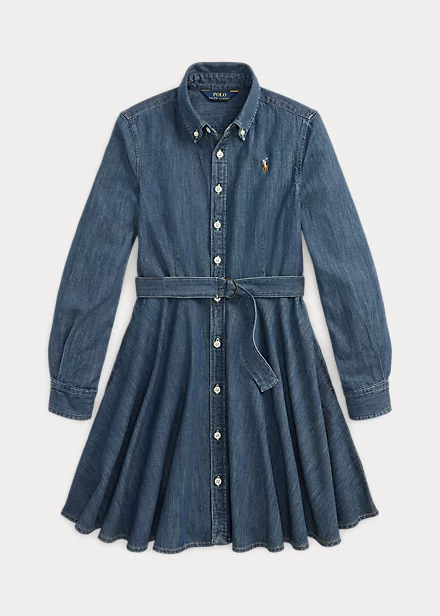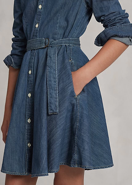Medium-wash cotton denim and a classic fit-and-flare silhouette bring all-American charm to this shirtdress.