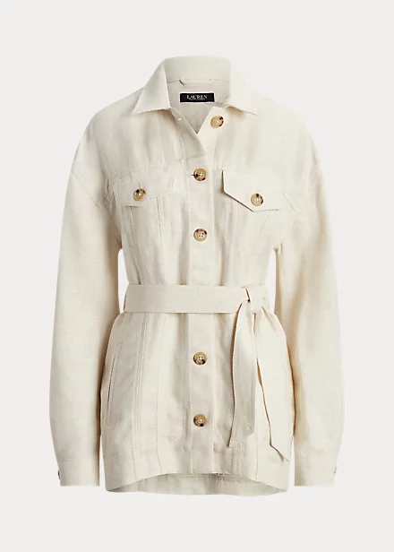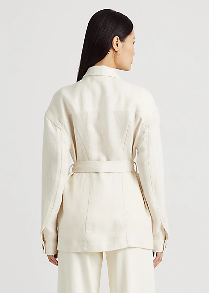 Belted Herringbone Linen Shirt Jacket