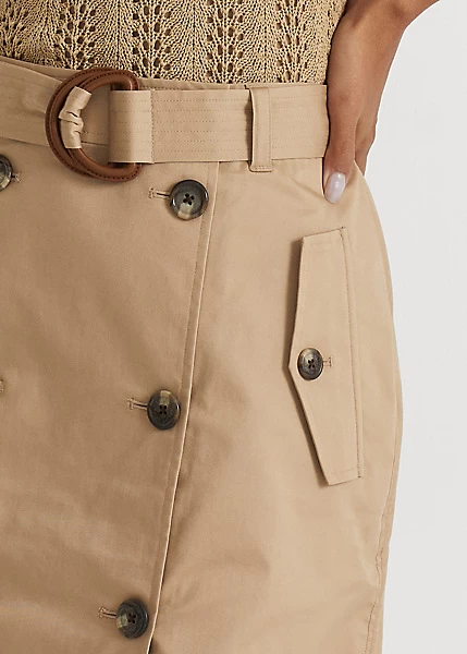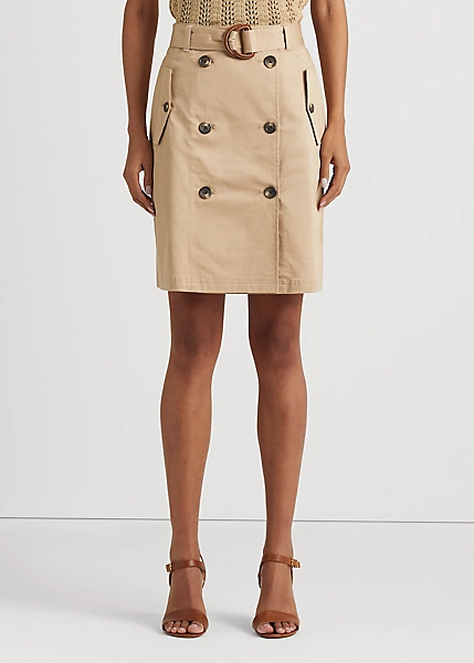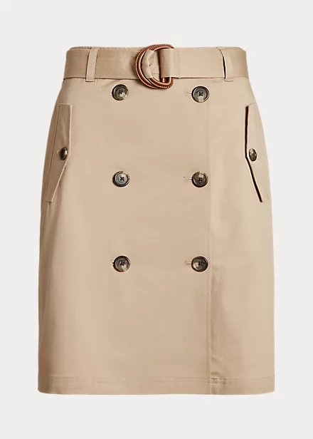 Echoing the timeless tailoring used in menswear double-breasted jackets, this skirt is rendered in micro-sanded stretch cotton twill for a soft hand and polished look. Detailed with signature-engraved horn-effect buttons, it’s finished with a faux-leather D-ring self-belt that accentuates the waist. Ralph Lauren partners with Better Cottonâ„¢ to improve cotton farming globally.