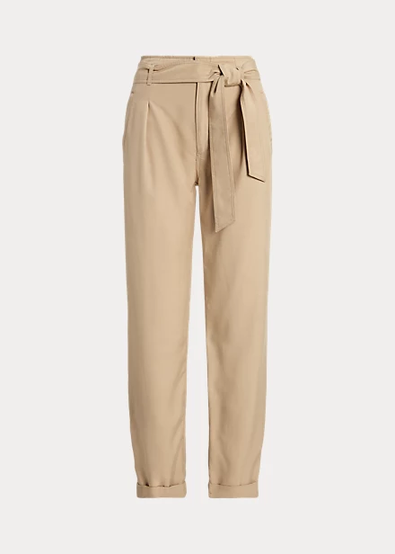 Crafted with linen-blend twill, these high-rise trousers are defined by a cropped, slightly tapered silhouette and crisp pleats. A self-belt cinches the waist for an effortless finish.