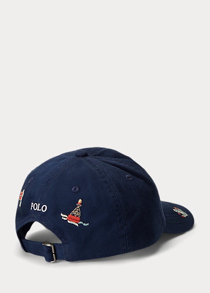 This twill cap is washed for comfort and embroidered with a nautical motif of sailboats, anchors and buoys.