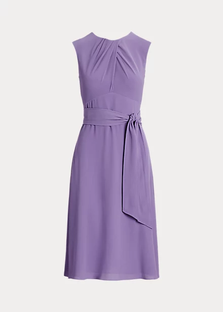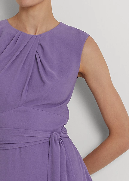 A sophisticated essential, this airy bubble crepe dress is elevated by an empire waist, pleating on the neckline and an effortless self-belt.