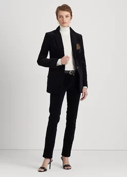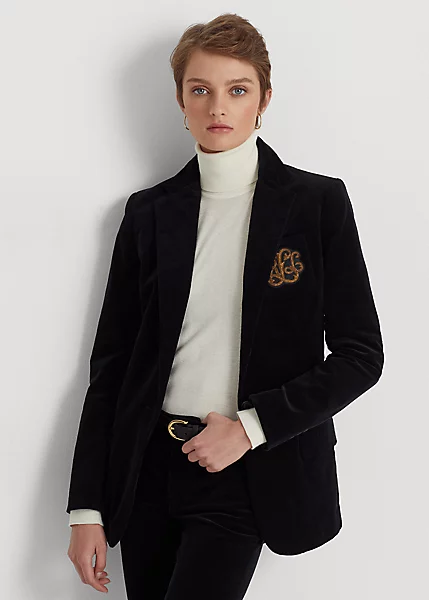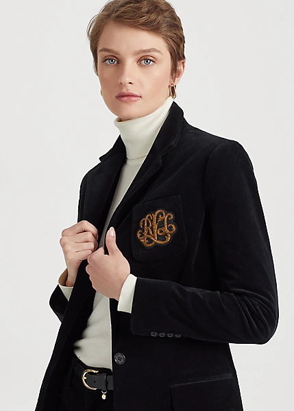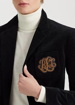 This soft corduroy blazer embodies luxurious Lauren style with a signature bullion patch on the chest and horn-effect buttons.