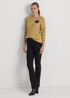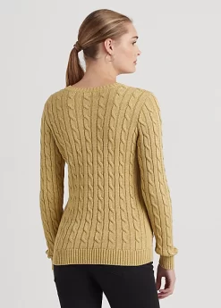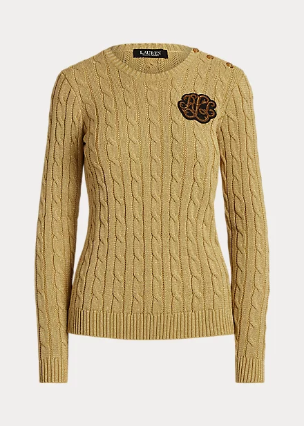 Lauren’s signature bullion patch, a classic cable-knit pattern and crest-embossed buttons bring sophisticated Lauren Ralph Lauren style to this soft cotton-blend jumper, while a metallic finish affords a contemporary touch.
