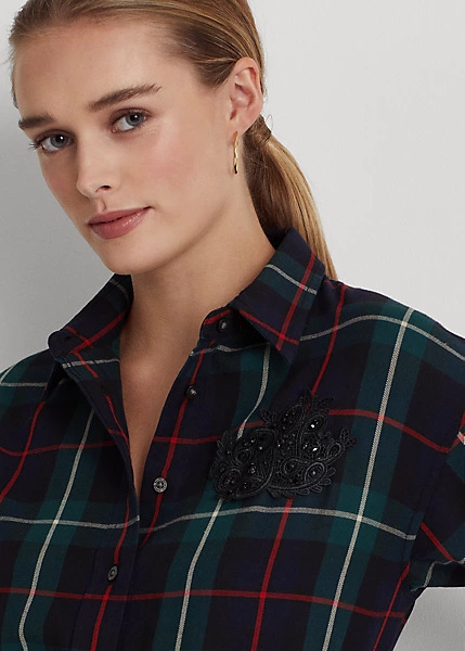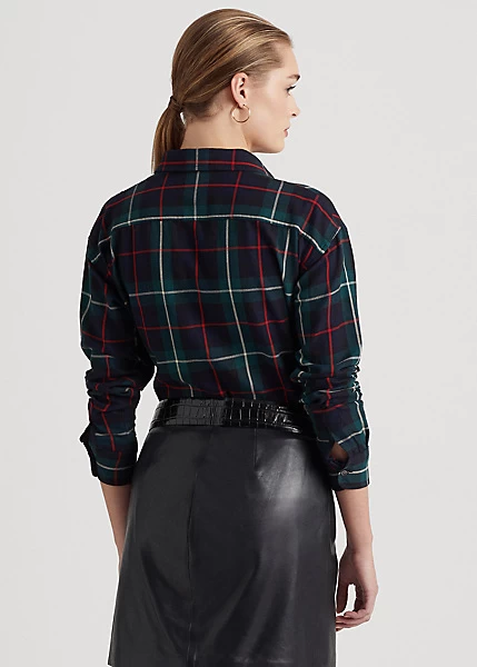 Embroidered with a lace “LRL” bullion patch on the chest, this classic plaid shirt is woven from soft cotton twill for a lightweight feel.