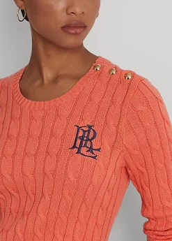 Knit with combed cotton for an unbelievably soft hand, this classic cable-knit jumper is distinguished by crest-embossed buttons on the shoulder and an “LRL”-embroidered logo on the chest. Ralph Lauren partners with Better Cottonâ„¢ to improve cotton farming globally.