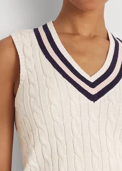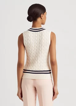 The perfect sophisticated layering piece, Lauren’s iconic cricket jumper vest is defined by a cable-knit pattern, contrast stripes and a relaxed-fitting silhouette. Ralph Lauren partners with Better Cottonâ„¢ to improve cotton farming globally.