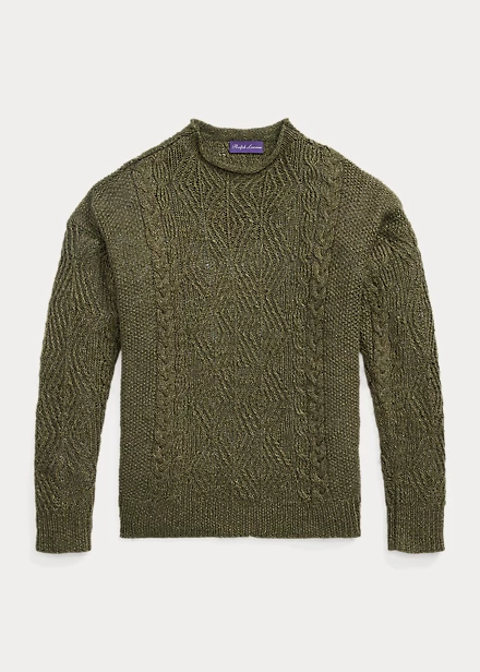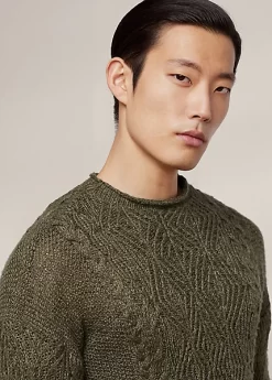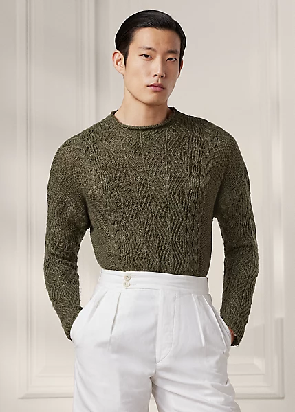 This cable-knit jumper is crafted with fine linen, mulberry silk and cashmere yarns, which yields a soft texture.