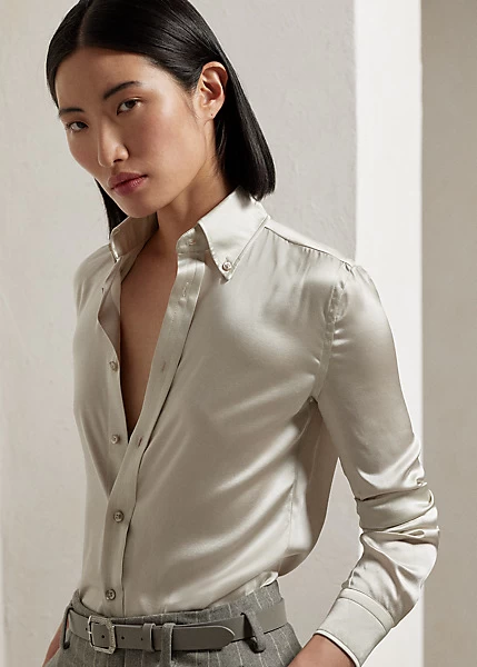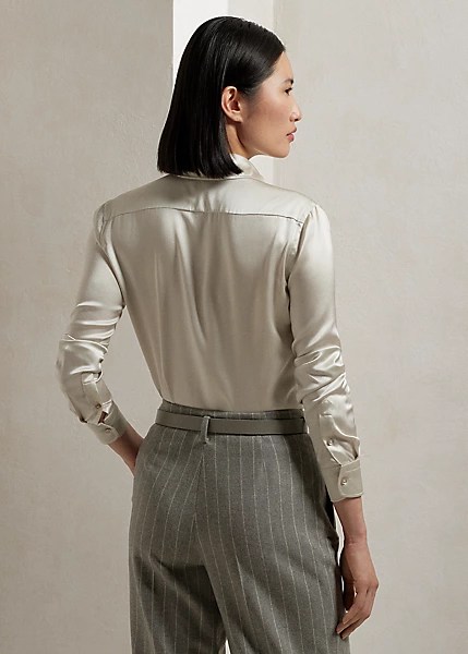 The Cameron draws inspiration from the first women’s shirt Ralph Lauren designed in 1971, and is updated in the season’s beautiful berry hue. Crafted from a lustrous mulberry silk charmeuse with a hint of stretch, this Italian-made shirt is designed with a button-down point collar, double pleats on each cuff and genuine mother-of-pearl buttons.