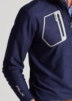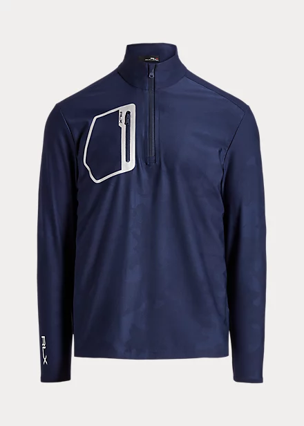 This pullover’s stretch jacquard fabric is crafted with recycled polyester, reducing our dependence on virgin petroleum-based material.