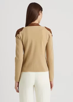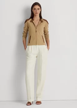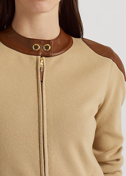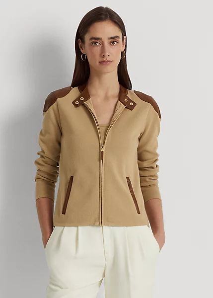 This athleisure-inspired jacket gets a sophisticated update with vegan leather trim and gold-tone hardware.