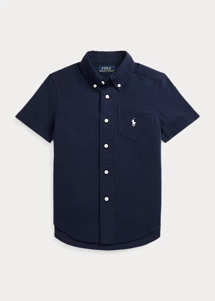 Embroidered with our signature Pony, this cotton seersucker shirt is a Polo must-have for the warmer months. Ralph Lauren partners with Better Cottonâ„¢ to improve cotton farming globally. Better Cotton trains farmers to use water efficiently, care for the health of the soil and natural habitats, reduce use of the most harmful chemicals and implement the principles of decent work.