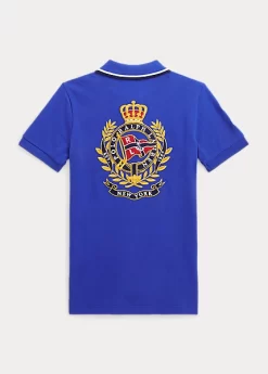This cotton Polo shirt is updated with signature sailing-inspired embroidery on the chest and back. Ralph Lauren partners with Better Cottonâ„¢ to improve cotton farming globally. Better Cotton trains farmers to use water efficiently, care for the health of the soil and natural habitats, reduce use of the most harmful chemicals and implement the principles of decent work.