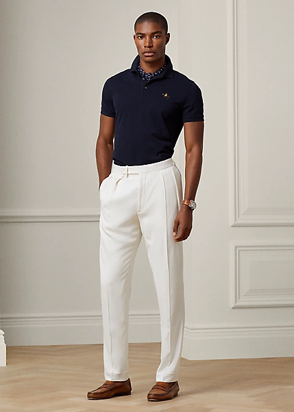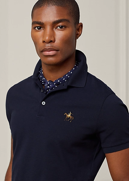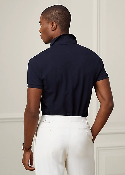 Crafted in Italy, the Purple Label Polo shirt is the ultimate in casual luxury. Its lightweight piqué fabric is knit from premium cotton that is mercerised on the yarn level and offers a soft texture. “Ralph Lauren”-debossed buttons made from genuine mother-of-pearl and the Standing Horse logo that is exclusive to Purple Label complete this modern icon.