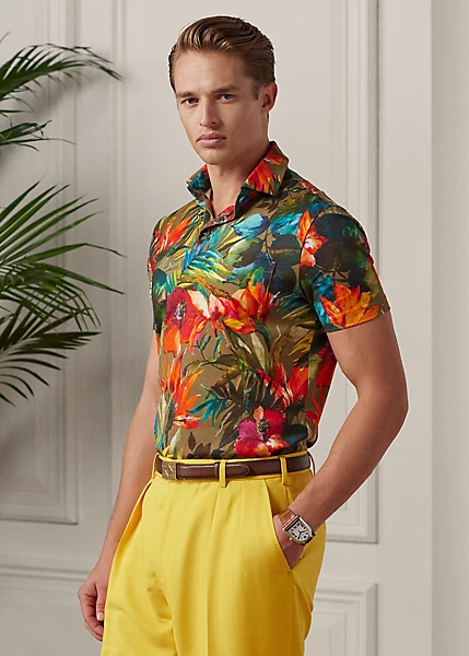 A radiant floral print and genuine mother-of-pearl buttons elevate this Polo shirt, which is crafted in Italy with ultra-soft cotton.