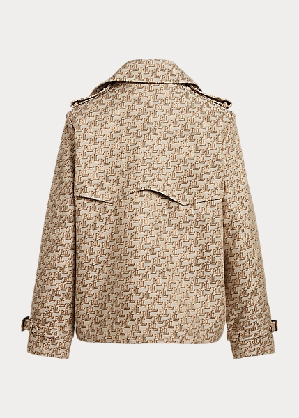 Equipped with water-repellent properties to ensure that you stay dry, this coat is crafted from Lauren’s specially-woven monogram fabric and punctuated with “Lauren Ralph Lauren”-engraved horn-effect buttons for signature style.