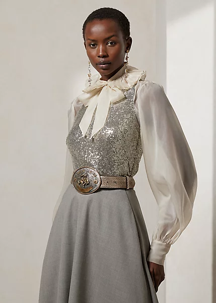 Updating a wardrobe classic, this knit tank utilises a stretch-infused fabrication with sequins spun directly into its construction, resulting in a modern, embroidered-esque appearance. Crafted in Italy, this glamorous style is lined with tulle and features a flattering crewneck.