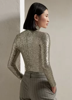 This long-sleeve top utilises a stretch fabrication with sequins spun directly into its construction to mimic the look of embroidery but with a more modern appearance. Crafted in Italy, this glamorous fitted style is lined with tulle and features a flattering roll neck.