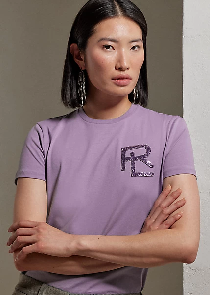 Crafted with cotton jersey, this tee is accented with Ralph Lauren’s sequin-embellished stacked monogram on the chest.