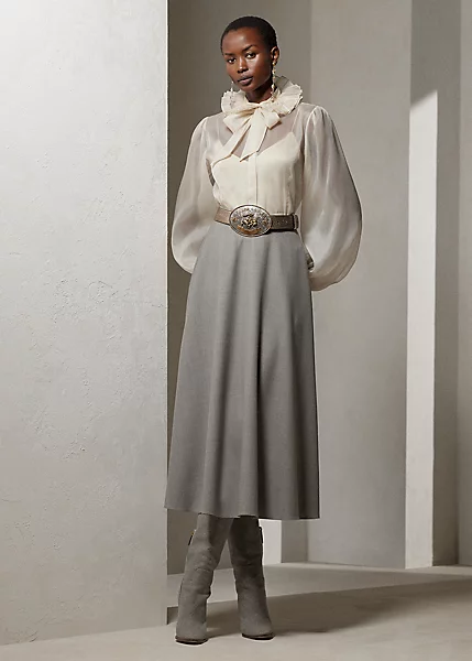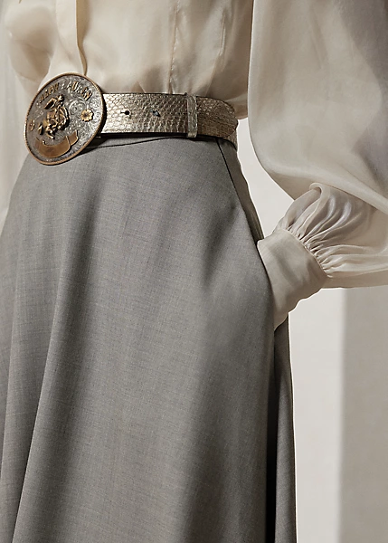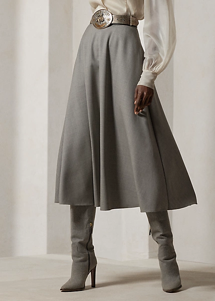 Originating in Fall 2020, this season’s iteration of the Erica skirt is rendered in extra-fine worsted wool, selected especially for its brushed, lofty finish and remarkable drape, and equipped with side on-seam pockets.