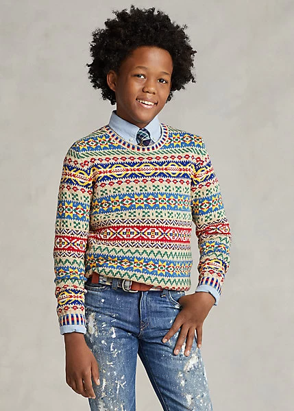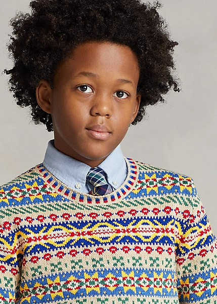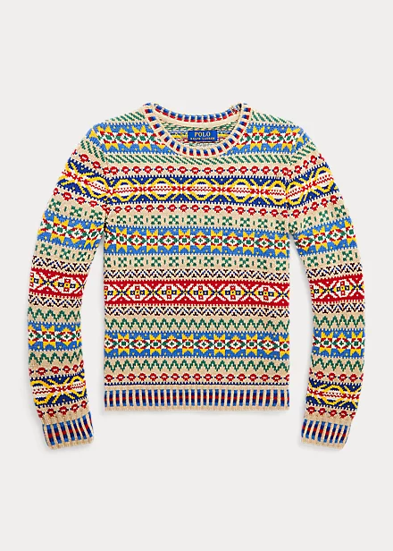 This cotton-blend jumper uses eight different yarns to create a colourful Fair Isle motif. Ralph Lauren partners with Better Cottonâ„¢ to improve cotton farming globally. Better Cotton trains farmers to use water efficiently, care for the health of the soil and natural habitats, reduce use of the most harmful chemicals and implement the principles of decent work.