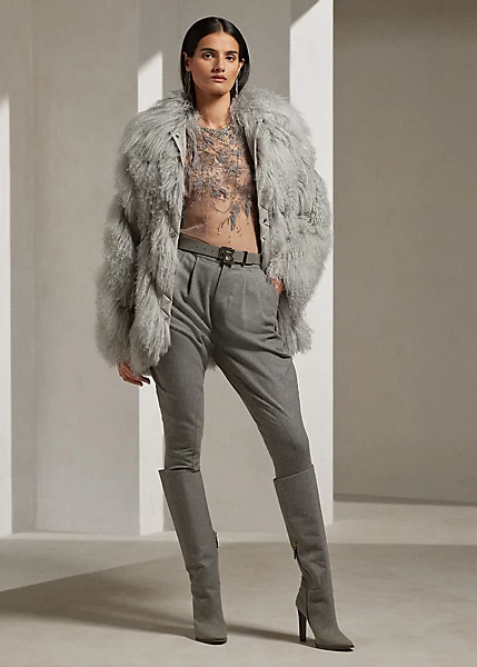 A continuation of the season’s romantic sensibility, the Fiorenzo blouse is a study of dedicated craftsmanship. With the work of four specialized embroiderers, the Fiorenzo’s slim, slightly relaxed silhouette is hand-beaded with a nature-inspired motif, which is composed of florals and leaves crafted with a mix of materials – including glass beads, crystals, silk georgette and fringe – to create a degradé effect. Its sheer tulle fabrication is woven with ultra-fine yarns and lined with a mulberry silk camisole for opacity.