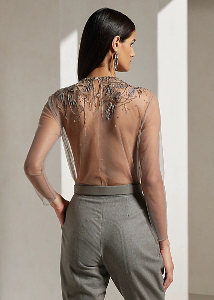 Fiorenzo Embellished Tulle Blouse