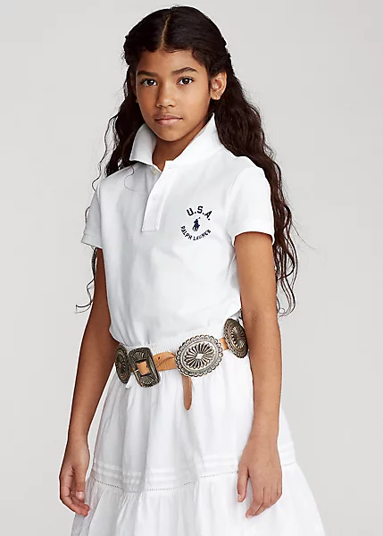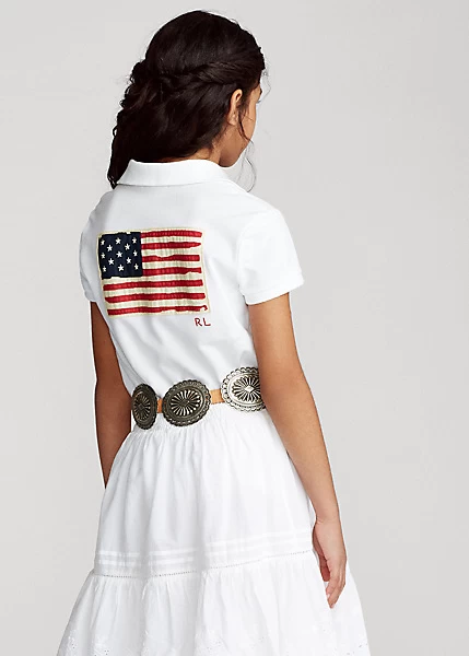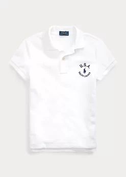 This cotton mesh Polo celebrates Ralph Lauren’s love of all-American style with a weathered flag patch and “U.S.A.” embroidery.