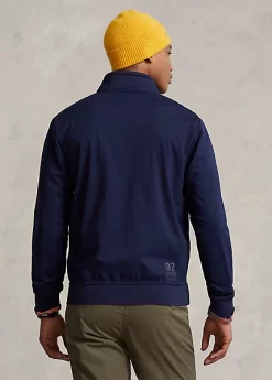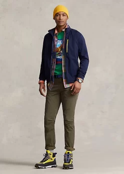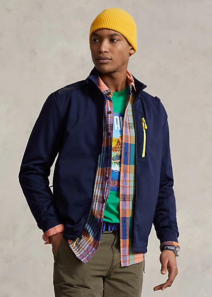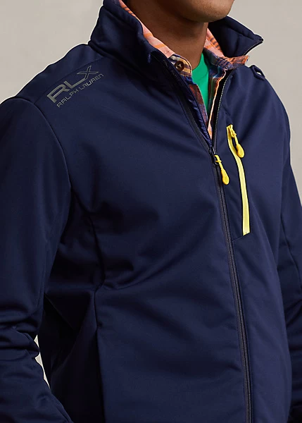 This jacket is crafted from a fleece fabric that features a smooth exterior and stretch-like characteristics.