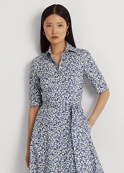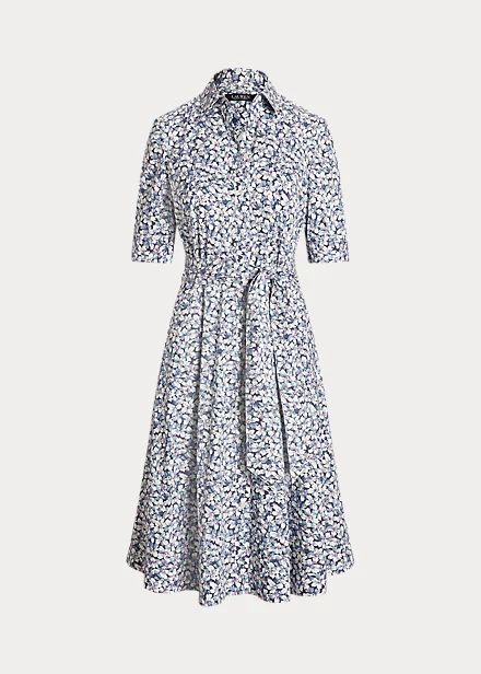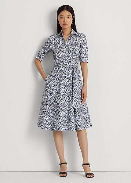 Elevated by the season’s charming floral motif, this iteration of Lauren’s iconic shirtdress is defined by a fit-and-flare silhouette, signature engraved buttons and a waist-accentuating self-belt. Equal parts stylish and comfortable, it’s made with a lightweight stretch-cotton blend.