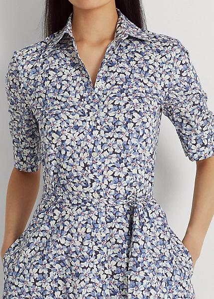 Floral Belted Cotton-Blend Shirtdress