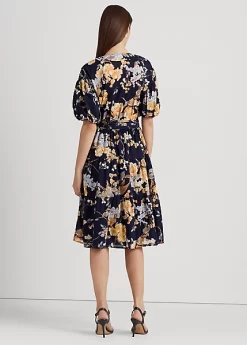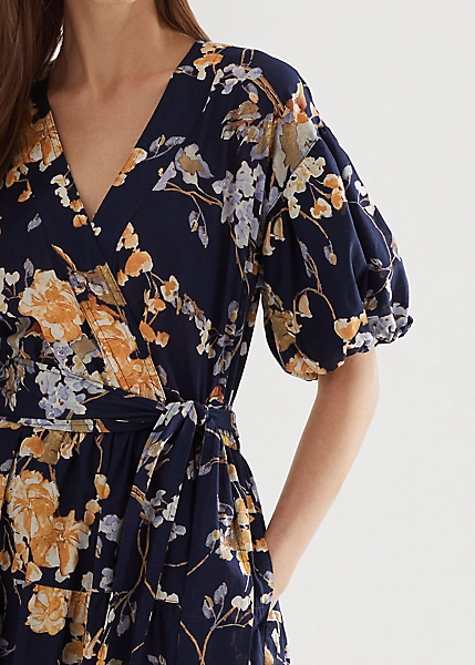 Exuding feminine charm, this airy cotton voile dress is characterised by romantic puffed sleeves, the season’s painterly floral motif and a waist-accentuating self-belt. Dropped shoulders offer a casual feel, while its fit-and-flare silhouette and tiered skirt create sweeping movement. Ralph Lauren partners with Better Cottonâ„¢ to improve cotton farming globally.