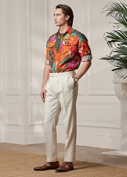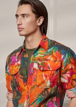 Crafted in Italy, this lightweight linen shirt contrasts a utilitarian-inspired silhouette with a tropical floral-inspired print.