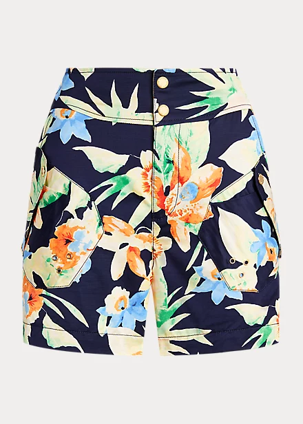 Designed with a high rise and a utility-inspired silhouette, these stylish shorts in the season’s tropical floral motif are crafted from fluid shantung for a breezy feel.