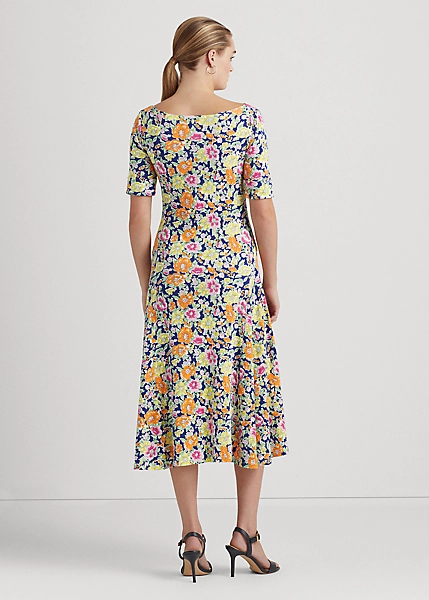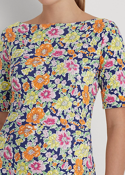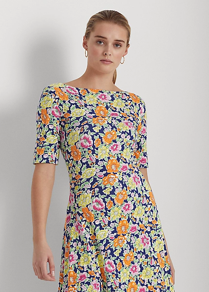 Elevated by the season’s feminine floral motif, this fit-and-flare midi dress features a flattering boatneck and is crafted with soft, stretch-infused cotton, making it an effortless choice for everyday style. Ralph Lauren partners with Better Cottonâ„¢ to improve cotton farming globally.