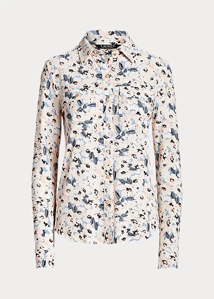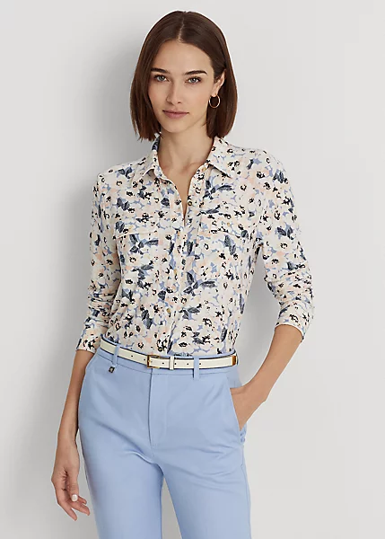 Elevated by the season’s painterly floral motif, this shirt is made with soft, stretch-infused jersey. Equal parts stylish and comfortable, it’s adorned with “LRL”-engraved buttons for a signature Lauren Ralph Lauren finish.