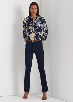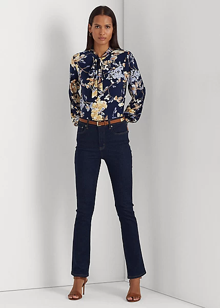 A self-tie accent on the neck and blouson sleeves bring a romantic sensibility to this breezy top, which is made with lightweight stretch jersey for a soft hand. It’s refreshed for the season with an elegant floral motif.
