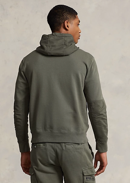 This cotton hoodie is garment-dyed to prevent shrinkage and specially washed for a faded effect.
