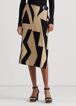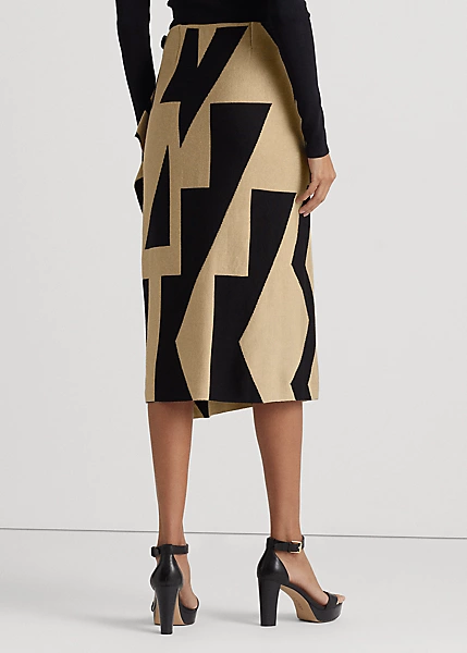 A modern take on the pencil skirt, this piece is updated with the season’s geometric motif and a wrap-style skirt overlay. Punctuated with a faux-leather buckled closure on the waist, its rendered in a soft cotton blend with a hint of shimmer for a contemporary sensibility. Ralph Lauren partners with Better Cottonâ„¢ to improve cotton farming globally.