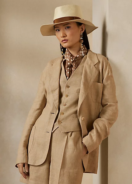Taking cues from a Spring 1991 Collection jacket, the Giuseppina is made in Italy with a silk-blend tweed distinguished by a subtle windowpane motif and specially selected for its soft hand. Equipped with patch pockets on the chest and waist, the Giuseppina is accented by genuine horn buttons engraved with “Ralph Lauren” for a signature finish.