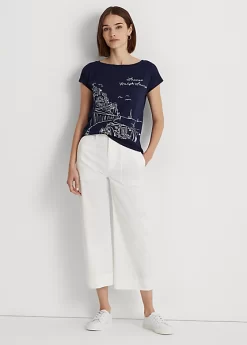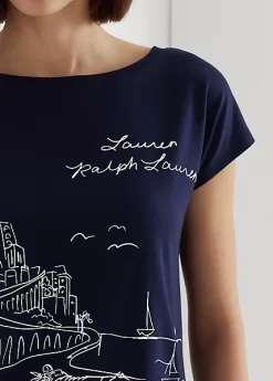 Made with lightweight cotton-blend jersey, this graphic tee depicts a coastal roadway motif and Lauren’s signature logos on the front. Ralph Lauren partners with Better Cottonâ„¢ to improve cotton farming globally.