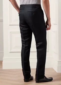 These suit trousers are hand-tailored in Italy with a textured fabric that was custom-developed for Ralph Lauren. The luxurious cloth combines lightweight linen with smooth mulberry silk.