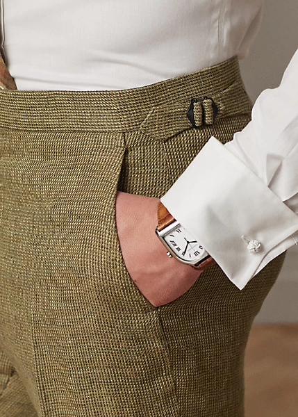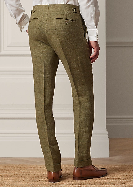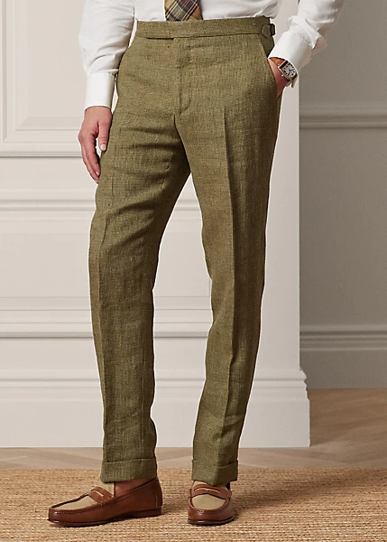 These flat-front trousers are crafted in Italy with luxurious linen tweed and finished with genuine horn buttons.