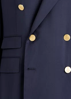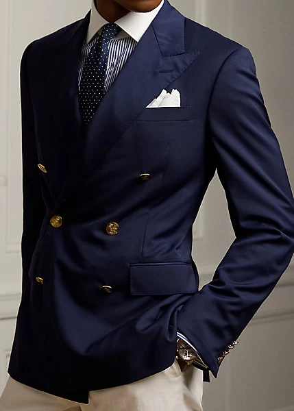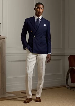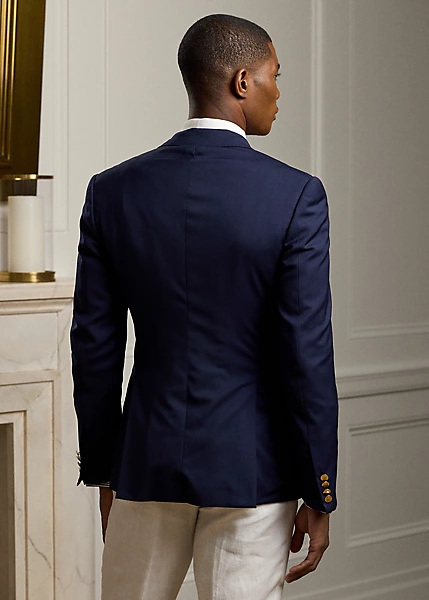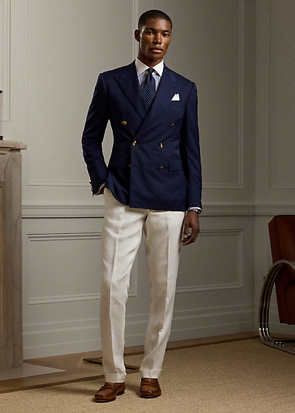 The double-breasted blazer is a staple of Mr Lauren’s personal wardrobe, and this Purple Label version takes the signature silhouette to the peak of sartorial quality. Crafted in Italy from exclusive wool serge, this blazer is defined by meticulously shaped shoulders that offer a raised, “roped” profile on the seam.