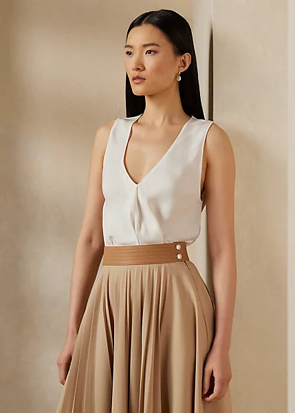 A statement of modern elegance and timeless luxury, the sleeveless Gwinnett is expertly crafted with satin that’s specially washed for a luxurious drape and an elevated sheen.